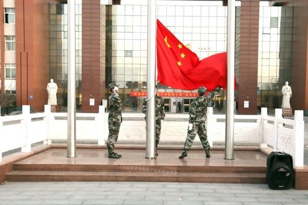 为响应贯彻党的十九大精神,全面培养大学生爱国爱党意识,为中国特色社会主义伟大事业添砖加瓦。医学院于2017年12月4日早上7:00在孔孟广场开展以“新时代,新青年”为主题的升旗仪式,由党总支副书记行政院长郭传祯、基层团委学生会主席孙伟强以及学生代表讲话发言,学生会全体学生干部及17级全体学生参与此次升旗仪式。