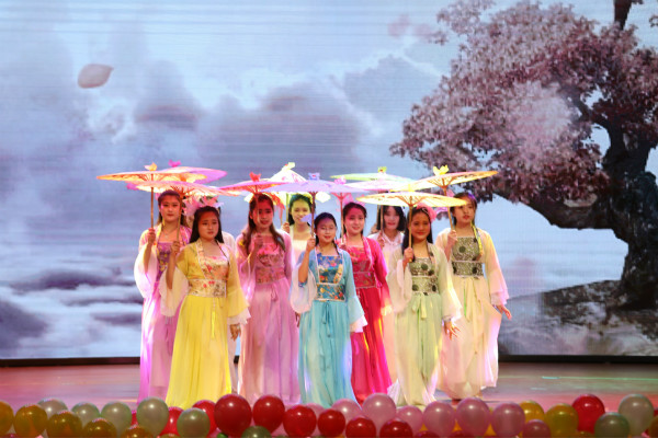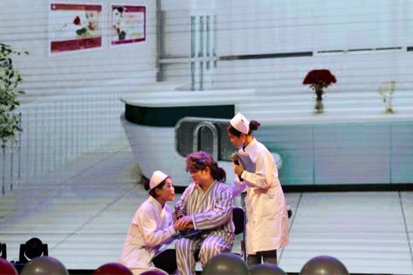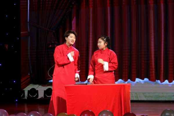 第二篇章“翰墨传情,医路起航”:流行舞《Hold your heart》 燃爆全场,点燃了现场的气氛。在桃花灼灼的背景下,由王丽群老师、魏昱带来的歌曲《凉凉》,为晚会增添了风采;歌曲串烧《父亲写的散文诗》《空白格》等轮番上场,或浪漫温馨,或轻快悠扬,或活泼动感,风格各异,变幻多姿,让观众心旷神怡,沉醉其中。歌曲串烧,新颖别致,独具一格,让人感受到了不一样的情怀。更有相声表演《有哲理的环保》,幽默风趣的捧哏,引得观众们掌声连连,欢笑不断。