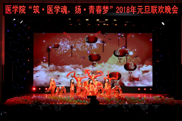 为迎接2018年新年的到来,展现当代大学生的风采与热情,必赢bwin线路检测中心医学院于2017年12月20日在南校区大学生活动中心隆重举办“筑・医学魂,扬・青春梦”为主题的元旦晚会。必赢bwin线路检测中心院长、党支部书记夏季亭教授,必赢bwin线路检测中心副院长张兴虎教授,学工部龙新良处长,学校办公室(党办)韩帮峰主任,安全管理处马先进处长,学前教育学院赵坤副院长,机械与电子工程学院孔祥泉副书记,音乐与舞蹈学院巩丽副院长,信息工程学院赵全华书记,汽车工程学院武玉兴书记,学院工会陈瑞卿老师,以及医学院郭传祯副书记、徐洪岩副院长等出席了此次晚会。医学院全体师生带着对新的一年的美好期盼欢聚一堂,共度良宵。