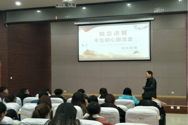 为深入贯彻落实党的十九大精神,学习党的新思想实现新目标,促进学生全面发展。医学院基层团委于2017年11月29日在1007教室开展“锐意进取,不忘初心跟党走”主题教育暨院长授课。本次会议由党总支副书记郭传祯主持,2017级全体团支书干部、宣传委员级基层团委办公室全体成员参与。