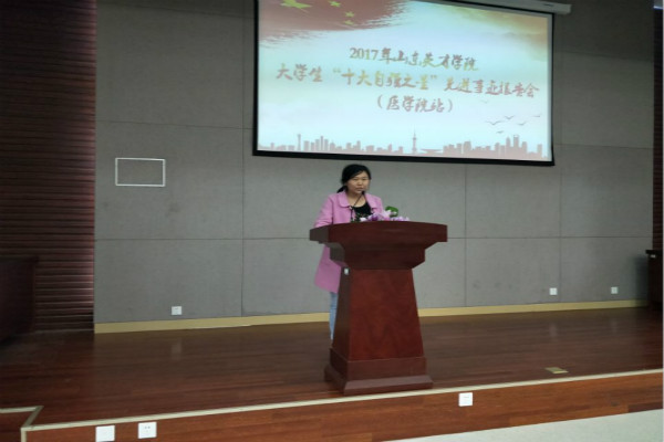 根据“创造新成就 喜迎十九大”系列教育活动要求,为响应学院号召,引导学生积极培育和践行社会主义核心价值观,深入挖掘和宣传表彰先进典型,以身边人榜样引领学生成长成才,医学院于2017年10月17日13:30在1007学术报告厅召开大学生“十大自强之星”先进事迹报告会。此次报告会特邀医学院行政院长郭传祯、基层团委书记杨忠艳及多位班级辅导员,15、16级班长、团支书,17级班长、团支书、学委全员参加。