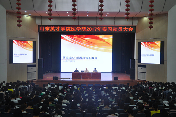 为加强医学院实习学生职业道德教育、行为规范教育,引导学生树立正确的就业观、择业观和创业观,在思想上为走上工作岗位做好充分准备,确保安全顺利完成实习任务。医学院于2017年5月31日下午17:30在南校区大学生活动中心召开2017年实习动员大会。医学院卢传华院长,郭传祯副院长,教学办公室主任王世芳出席了本次动员会,2014级本科、15级高职全体学生参加动员会。