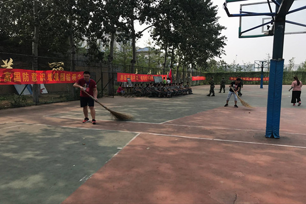军训场地志愿者在行动