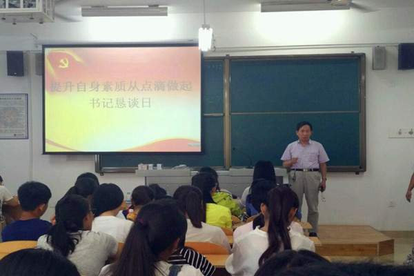 会议开始,祝青山书记就此次团日活动 “提升自身素质从点滴做起”的主题进行了简单的讲述,利用PPT和与学生互动的方式,了解身边小事。随后向同学们提问:大学生的本职工作是什么?强调了大学生的本职工作是学习,随后又讲解了作为当代大学生应当注意的自身文明素质。然后分别从学院内、宿舍、食堂以及校园内这四个方面详细的讲解了“提升自身文明素质从点滴做起”应该注意的方面,如在学校里,应该尊重师长。与老师说话时要客气有礼貌,当老师进入寝室时要起立迎接。维护正常的就餐秩序,不拥挤,不加塞,尊重食堂服务人员。并提出两点要求:要做有素质有礼貌的大学生;注意身边小的问题把高素质高修养高觉悟的品行传递下去。祝青山书记还用亲生经历的案例嘱咐学生身边存在的安全隐患,不要因为隐患小就放松警觉,提升自身安全素质应从点滴做起。最后,行政院长郭传祯对此次会议进行了总结性的发言,对班委提出了几点要求。此次会议取得了圆满的成功。