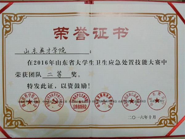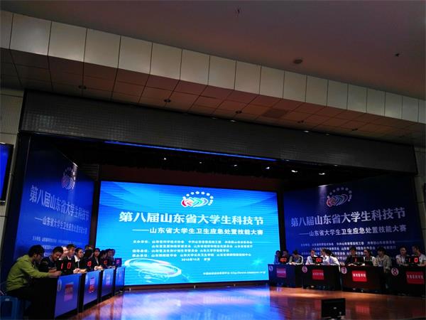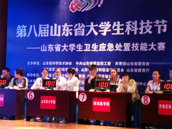 为宣传普及卫生应急处置知识和基本技能,提高大学生学习卫生应急处置的兴趣,引导和培养大学生的卫生应急处置综合能力和创新能力,2016年10月15日,由山东省科学技术协会、中共山东省委高校工委、共青团山东省委员会、山东省发展和改革委员会、山东省经济和信息化委员会、山东省教育厅联合主办,山东省卫生和计划生育委员会、山东大学齐鲁医学部指导,山东预防医学会、山东大学公共卫生学院、山东省疾病预防控制中心具体承办的2016年第八届山东省大学生科技节――大学生卫生应急处置技能大赛在山东省疾控中心举行。全省18个参赛队伍共54人参赛,最终必赢官网医学院代表队以全省总分第二名的成绩荣获团体二等奖,医学院刘长惠同学以全省第一名成绩荣获个人特等奖,张清琛、曹海霞同学分别以第四,第五名成绩荣获个人二等奖。