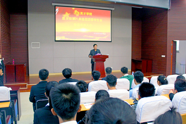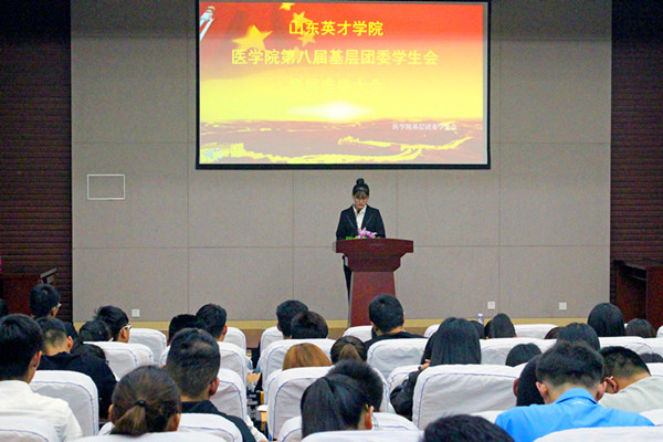 主持人马海英用平时的语言引入会议的主题宣布会议开始。大会进行第一项,全体与会成员起立奏唱中华人民共和国国歌,整个会场庄严肃穆。大会第二项,由医学院行政院长郭传祯发表讲话,院长首先提议为在山东省大学生卫生应急处置技能大赛中获得奖项的同学鼓掌,倡议学生干部向他们学习。接着,郭院长对上届学生会的成绩做出了总结并表示上届的基层团委学生会的优秀成绩离不开每个学生会成员的努力。最后,郭院长对本次的换届大会后即将入选的新的学生干部提出了几点要求:(一)要迅速转变角色,积极开展各项工作,同时要与各个部门之间交流沟通,相互支持,共同进步。(二)以身作则,发挥模范干部的领导作用。(三)树立服务理念,把桥梁与纽带作用发挥到极致,做好上传下达。大会第三项,竞选人竟职演讲。主持人马海英宣读了本次竞选规则。随后各个竞选人有秩序的上台演讲,每个竞选人都积极的上台进行了精彩的演讲,竞争十分激烈。大会第四项,由祝青山老师发表讲话。祝老师表示竞选的同学不管是否竟职成功,在今后的工作中都要注意四点要求:(一)加入学生会的同学应该放好心态,在工作中要创新。(二)工作要坚持,善始善终。(三)懂得礼仪与礼貌。(四)责任心要强。并宣读了竞选结果。最后,由新上任的学生会主席刘世澎发表讲话,简单概述了接下来工作开展的注意事项以及自己上任如何带领好学生会的方案。最后主持人马海英总结本次会议,宣布会议结束。此次会议取得了圆满的成功。