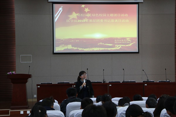 10月29日下午,由基层团委书记张巧梅在医学院1007学术报告厅主持召开了以“文明校园,绿色校园” 团委书记恳谈会。全体团学干部参加了此次会议。会中学生代表针对身边的不文明现象发表自己独到的见解,活动过程中气氛活跃,掌声不断,暖意融融,每个同学都积极踊跃的参与进来,充分表现了活动中“文明校园,绿色校园”的主题思想。会议最后张书记总结指出:“态度决定一切,细节决定成败。作为一名大学生,应该注重在校期间良好行为习惯的养成。而绿色文明的校园不仅仅是有广阔的绿化覆盖率,而是真正意义上的有着文明环保的绿色校园,这需要我们每个人来维护。不仅如此,还要多学习安全知识,提高防范意识,为营造一个和谐的学习生活环境贡献自己的一份力量。”