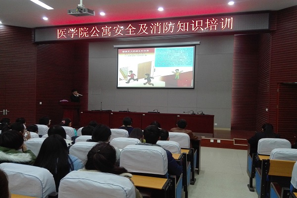 为了增强大学生的消防安全意识,2015年11月15日19时,赵晋田老师、宿管会部长景丹丹和副部长孔维卿在医学院1007教室对15级宿舍长、班级安全委员及宿管会全体成员进行了公寓安全及消防知识的培训。