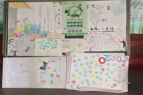3月20日至27日,医学院宣传部组织开展“传家风 带学风 促校风”展板绘画、展览活动。各班宣传委员积极同学班级学生商讨、绘画,共同完成了一幅幅传递着浓浓家乡情的画卷,通过评选共六个班的展板在医学院大厅展板区展示,其中,CZ1504班宣传委员详细的解说了他们班级展板是由孙子给爷爷捶背的大篇幅彩色铅笔画和有关主题活动的文字组成,展板形象生动,活泼可爱,得到了学生们一致好评。家风展板展示活动丰富了大学生精神生活,鼓励大家继承优良传统,以家风带动学风,营造一个良好的学习生活环境,以学风带动校风,促进学生和学院共同发展。