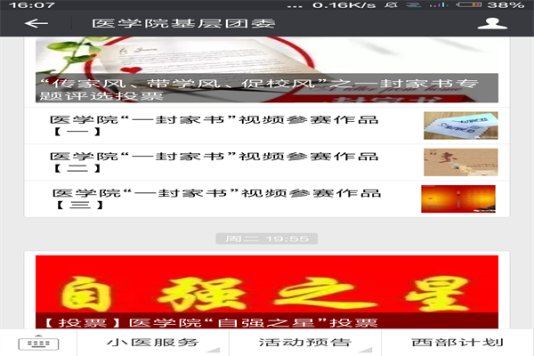 写一封家书,传递浓浓的亲情;写一封家书,给予厚厚的温暖;写一封家书,寄给这世上最挂念你的人。3月11日至31日,医学院办公室联合新媒体协会组织开展了“一封家书”视频评选活动,提倡学生通过给父母写一封信,让学生在家庭的交流中梳理自己家风,知晓家风的重要意义,写家书的过程,也是学生们一次自我认识,自我教育,焕发出爱父母、爱家庭美好情感的过程,树立良好家风,传承家庭美德。