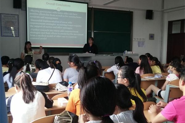 为了帮助老年类专业学生更好地了解长期照护行业发展的国际前沿,医学院于2015年6月9日14点在医2002组织“Empowering Nurse Aideas in the Long―term Care Setting Strategies and Effects”即对长期护理中心的护理员授权:策略和效果研究的学术报告会。本次学术报告的主讲人是北德克萨斯州大学的教授、博士生导师Cready女士。出席本次活动的领导有医学院王芳副院长、边建朝副院长,任课教师和老年护理、老年服务与管理的学生。