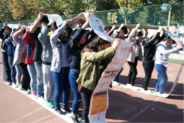 活动开始前,体育部准备好报纸、指压板等比赛道具,将参赛团队进行分组后,由志愿者带入指定场地,九点整比赛正式开始。在十人绑腿跑的赛场上,听着大家洪亮的口号,看着大家整齐的步伐,选手们用实际行动诠释了什么是团结!