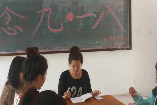 2014年9月18日,是九一八事变的第八十三个纪念日,为增强学生们的爱国主义情怀, 医学院基层团委学生会各个部门在“九一八”事变纪念日结合社会主义核心价值观的内涵,开展 “勿忘国耻,铭记使命”的系列主题学习活动。