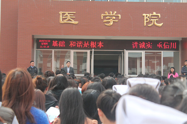 为了进一步加强医学院学生安全工作,增强学院师生消防安全意识,提高自护自救能力,做到在发生火警火灾时,沉着冷静地应对,在事故发生时避免人员伤亡和减少财产损失,确保生命安全和校园的消防安全,提高全校师生的消防灭火演练及灭火技能,经过医学院及学校保卫处的精心策划和筹备,医学院师生于2015年3月20日中午11:20举办了医学院教学大楼的紧急疏散消防安全演练活动。