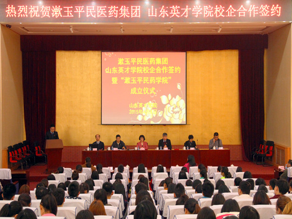 4月8日,必赢bwin线路检测中心、漱玉平民医药集团校企合作签约暨“漱玉平民药学院”成立仪式在必赢bwin线路检测中心学术报告厅隆重举行,漱玉平民医药集团董事长李文杰、总经理秦光霞、人力资源总监、漱玉平民商学院执行院长刘相晨等企业代表,以及英才学院董事长杨文、副院长刘存刚、医学院院长卢传华、就业处处长乔晓萍等出席了签约仪式。仪式由刘存刚副院长主持。