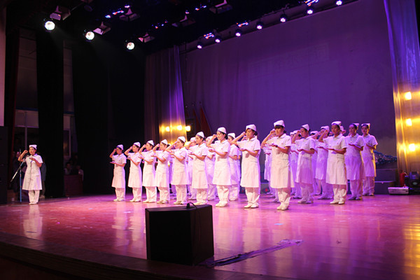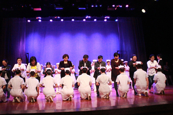 下午18:00,我院又隆重举行了“中国梦 天使梦”必赢bwin线路检测中心5.12国际护士节“授帽・传光”仪式和文艺汇演。必赢bwin线路检测中心副院长刘翠兰教授、校长办公室王冠良主任、学生处龙新良处长、学生处李寿杰副、邵占荣副处长、团委王鹏飞书记、保卫处韩长江副处长以及各二级学院行政副院长应邀参加了本次庆祝活动。活动中受邀嘉宾和学院老师一起为40多名护理学员代表佩戴护士帽,举行“授帽・传光”仪式,仪式庄重热烈,氛围感人,有的学生代表流下了激动的眼泪。随后全体护士起立举行了南丁格尔誓言宣誓。