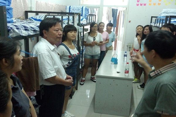 2014年8月12日上午,医学院院长卢传华教授,副院长于志芳、王芳教授、郭传祯副教授、教学秘书王世芳老师和辅导员老师,下到新生宿舍,看望慰问报到的新同学,各位领导仔细查看了新生们的住宿情况,深入学生生活,关注学生动态。卢院长等院领导走进一间间学生宿舍,首先对学生的到来表示亲切问候和热烈欢迎,院领导深入地了解了学生的生活,并与同学们亲切的交谈,给了学生的极大的支持和鼓励;院领导耐心地向新生们介了绍大学学习、生活的特点,鼓励他们尽早适应大学生活,学会学习、学会生活、学会沟通与交流,院领导还向学生家长介绍了学校发展情况,请学生家长放心,对每一名学生学校都会认真负责,帮助他们成长成才;最后张院长也对新生们寄予了希望:希望他们在英才学院能够学有所成!