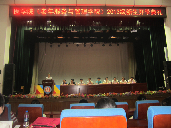 开学典礼在隆重的国歌声中拉开序幕。于志芳副院长首先致辞,她代表医学院全院师生向2013级新同学表示衷心祝贺和热烈欢迎。随后,于院长简要介绍了医学院的优良传统和办学历史,介绍了医学院教学师资情况,她希望2013级新同学,不仅需要具备医学专业知识,还要不断强化人文素质、沟通和交往能力、协作和创新能力的培养,早日成为一名优秀的大学生!